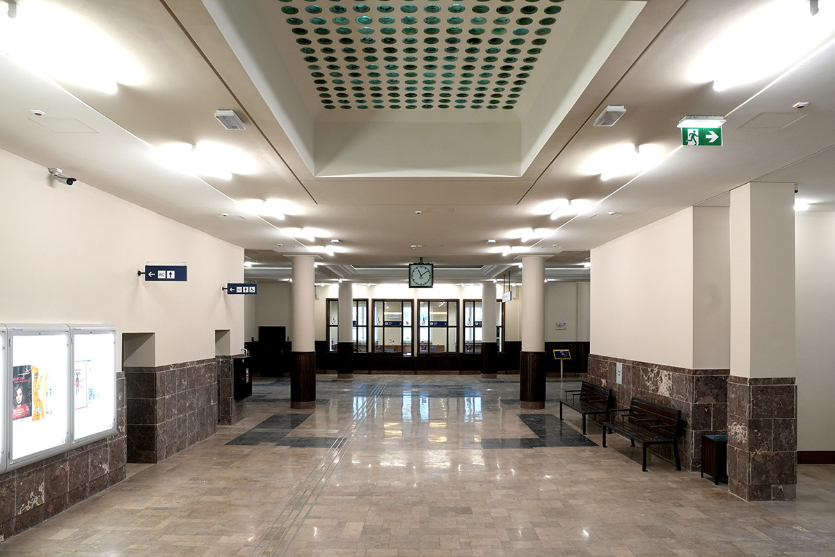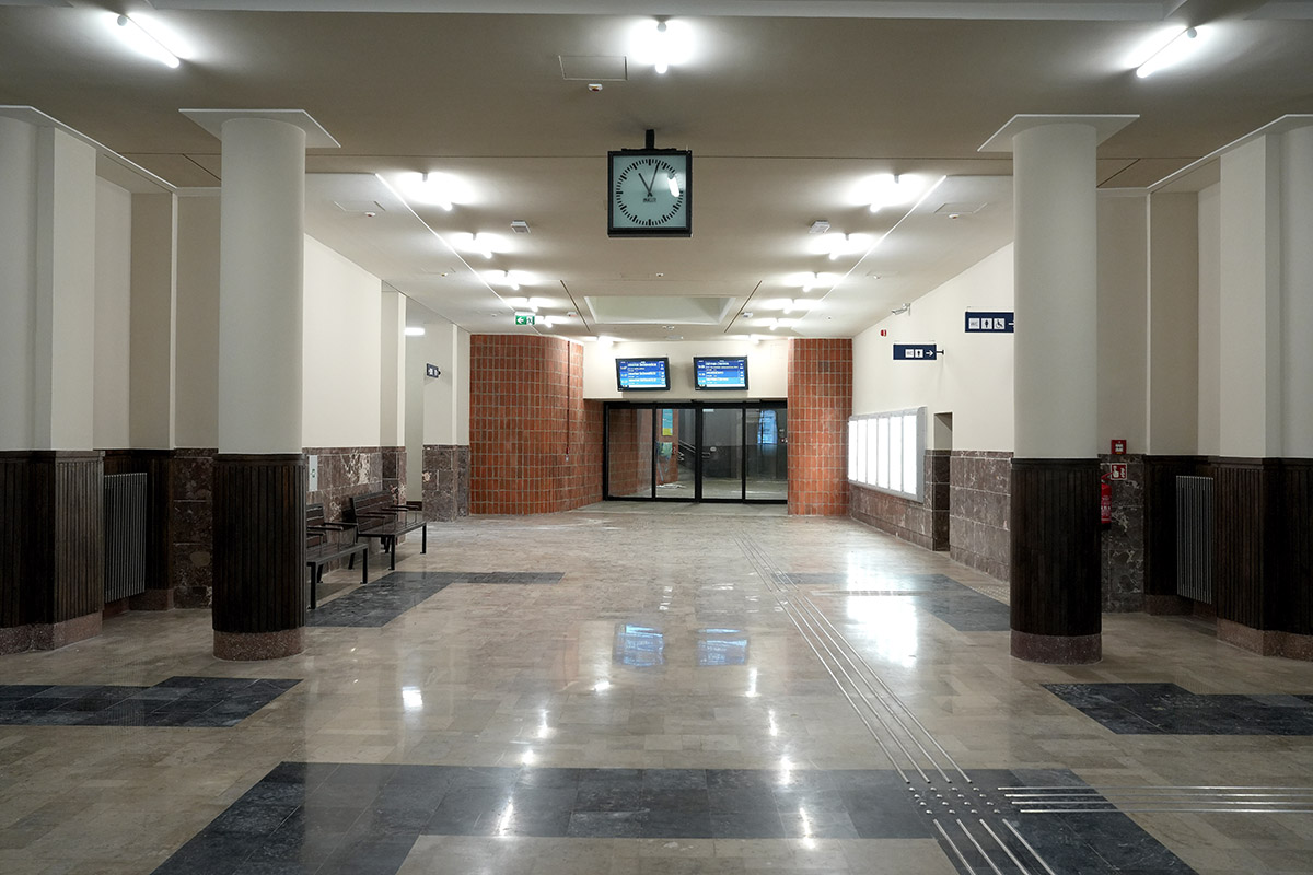 Prace związane z budynkiem dworca obejmowały m.in. odnowienie elewacji i stolarki okiennej, odtworzenie historycznych elementów wystroju z zachowaniem oryginalnych detali architektonicznych, w tym świetlika w przejściu oraz neonu z napisem ,,DWORZEC PODMIEJSKI”, przebudowę instalacji w tym: elektrycznej, sanitarnej, teletechnicznej i wentylacyjnej, wzmocnienie konstrukcji, remont dachu i tarasów. Przedmiotem prac w budynku jest także instalacja nowoczesnych systemów bezpieczeństwa i ppoż.